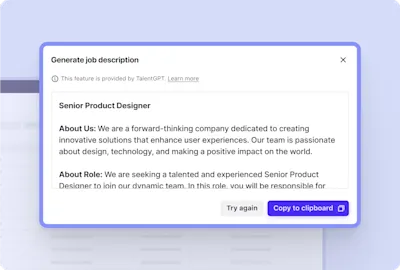 Beamery’s AI handles the repetitive tasks, so your team can focus on what matters most. From crafting strong job descriptions to identifying top candidates and personalizing outreach, our solutions boost productivity without compromising quality or compliance.